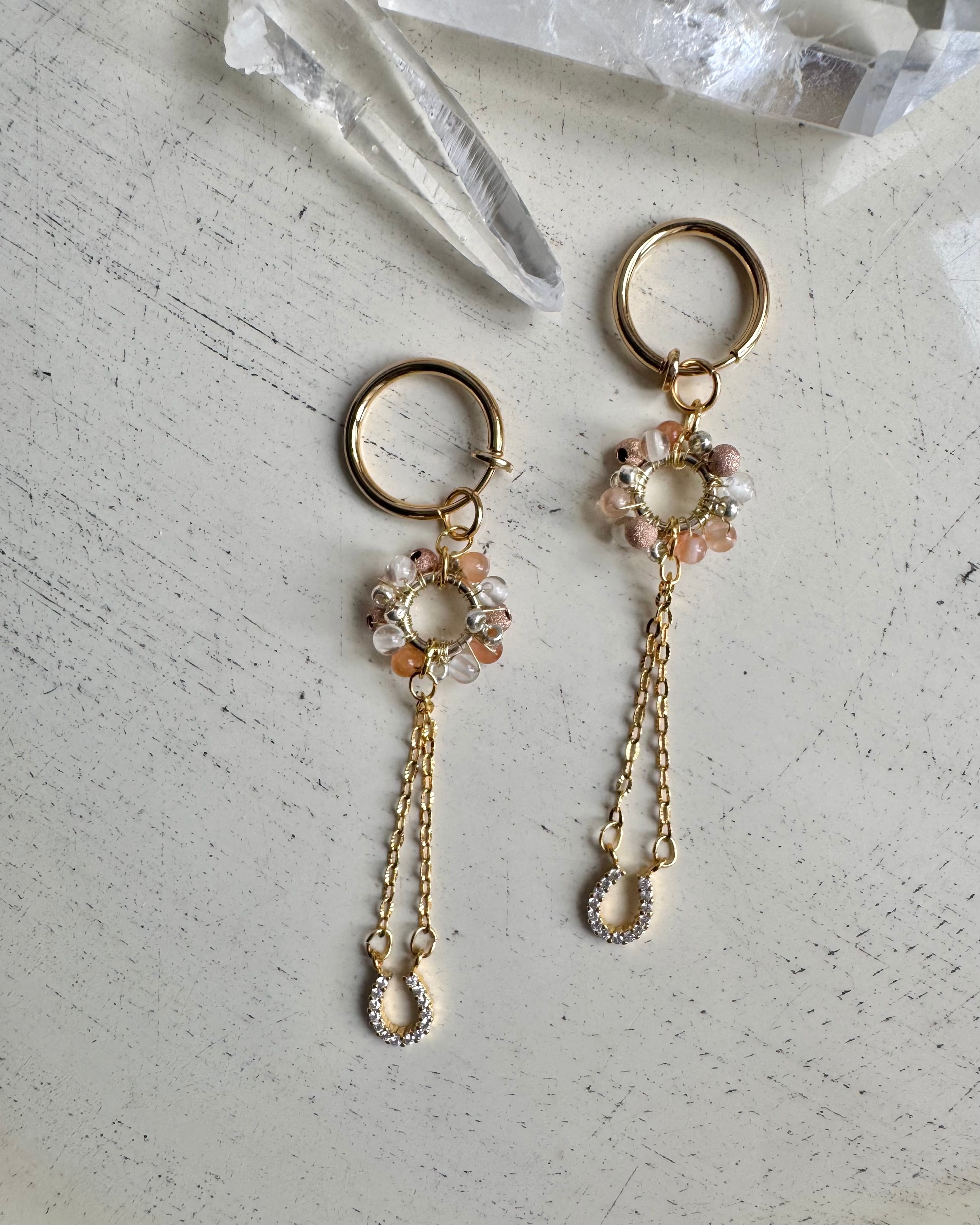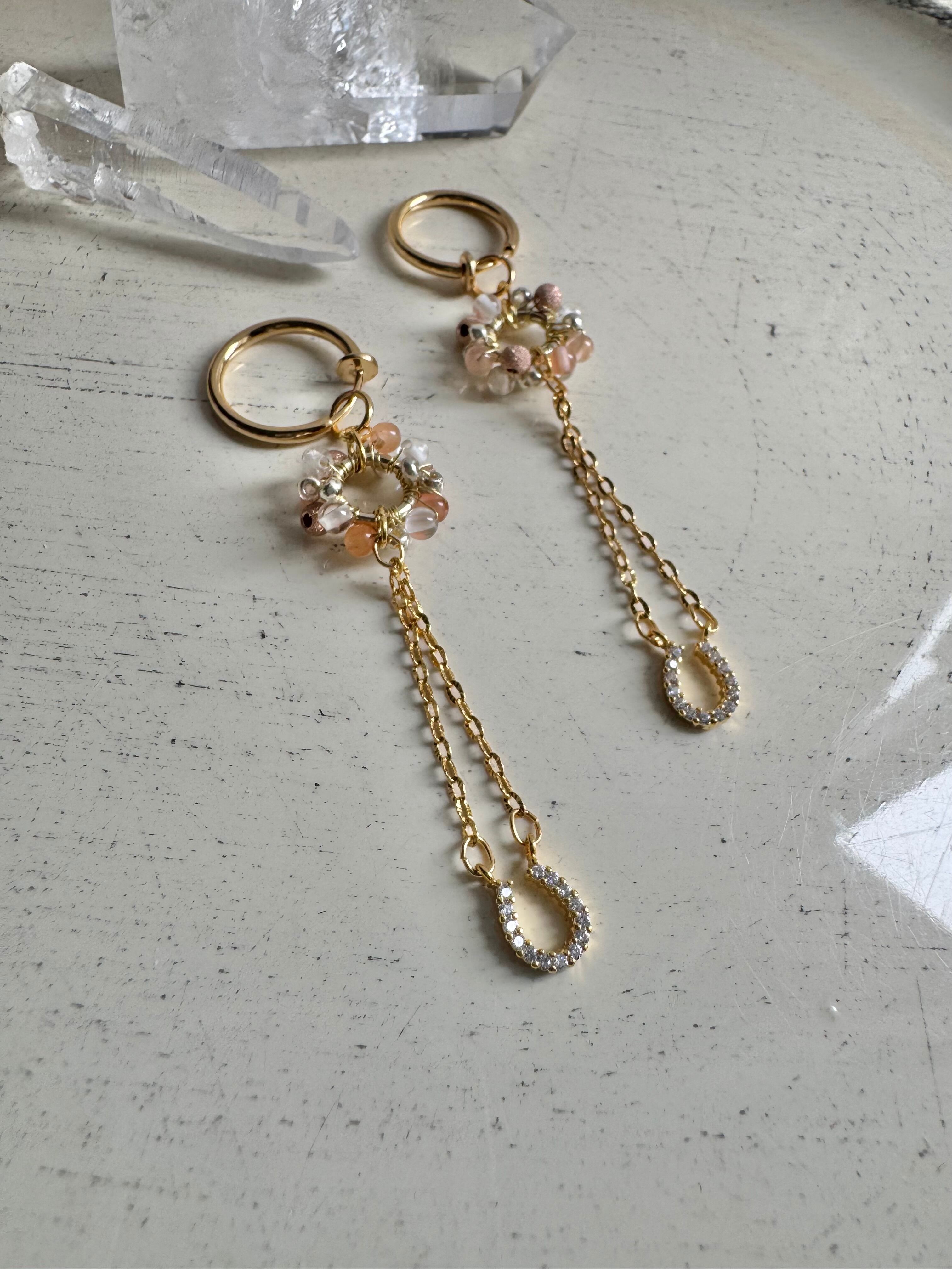 ジルコニアの馬の蹄パーツと天然石のイヤリングです