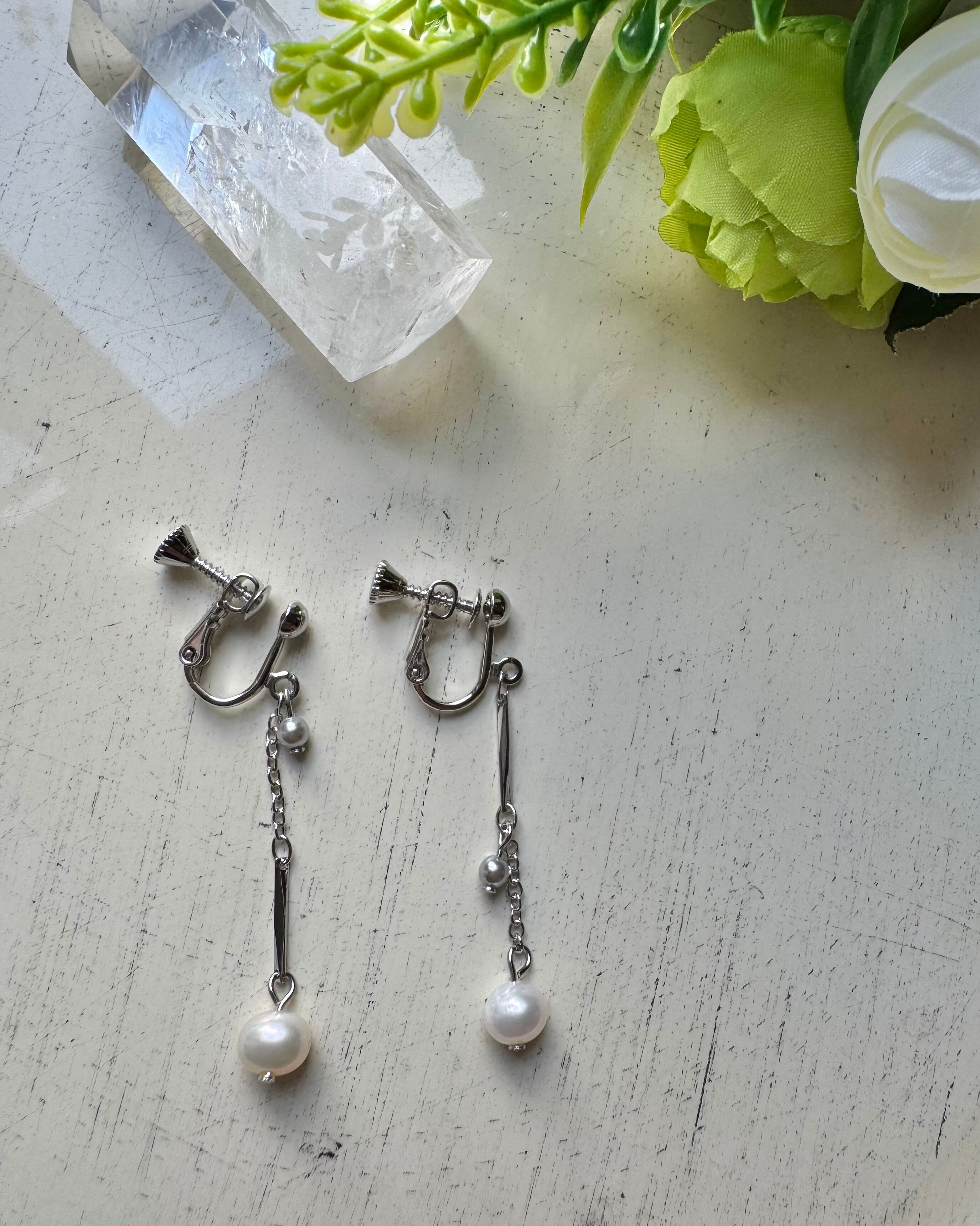 【シルバー】淡水パールと貝パールのアシンメトリーピアスorイヤリング