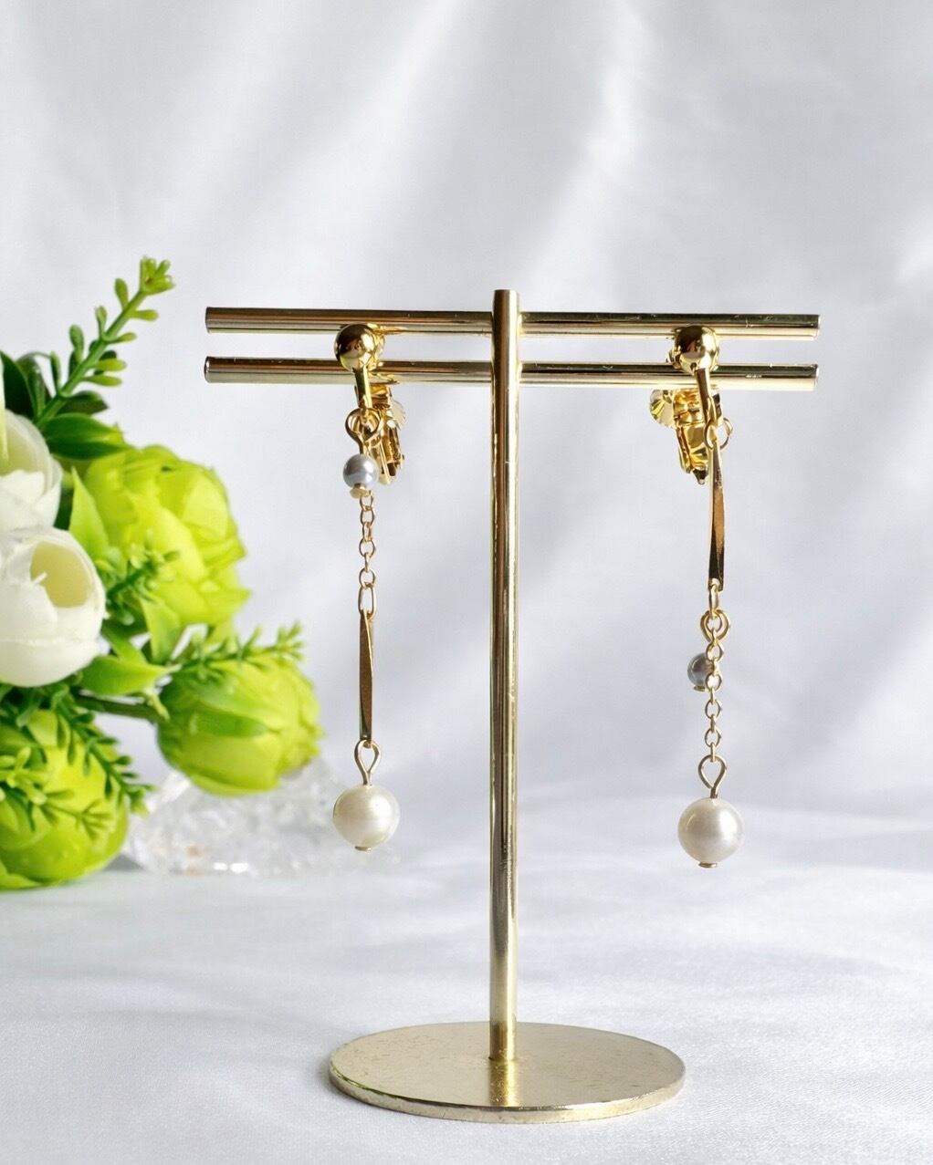 【ゴールド】淡水パールと貝パールのアシンメトリーピアスorイヤリング